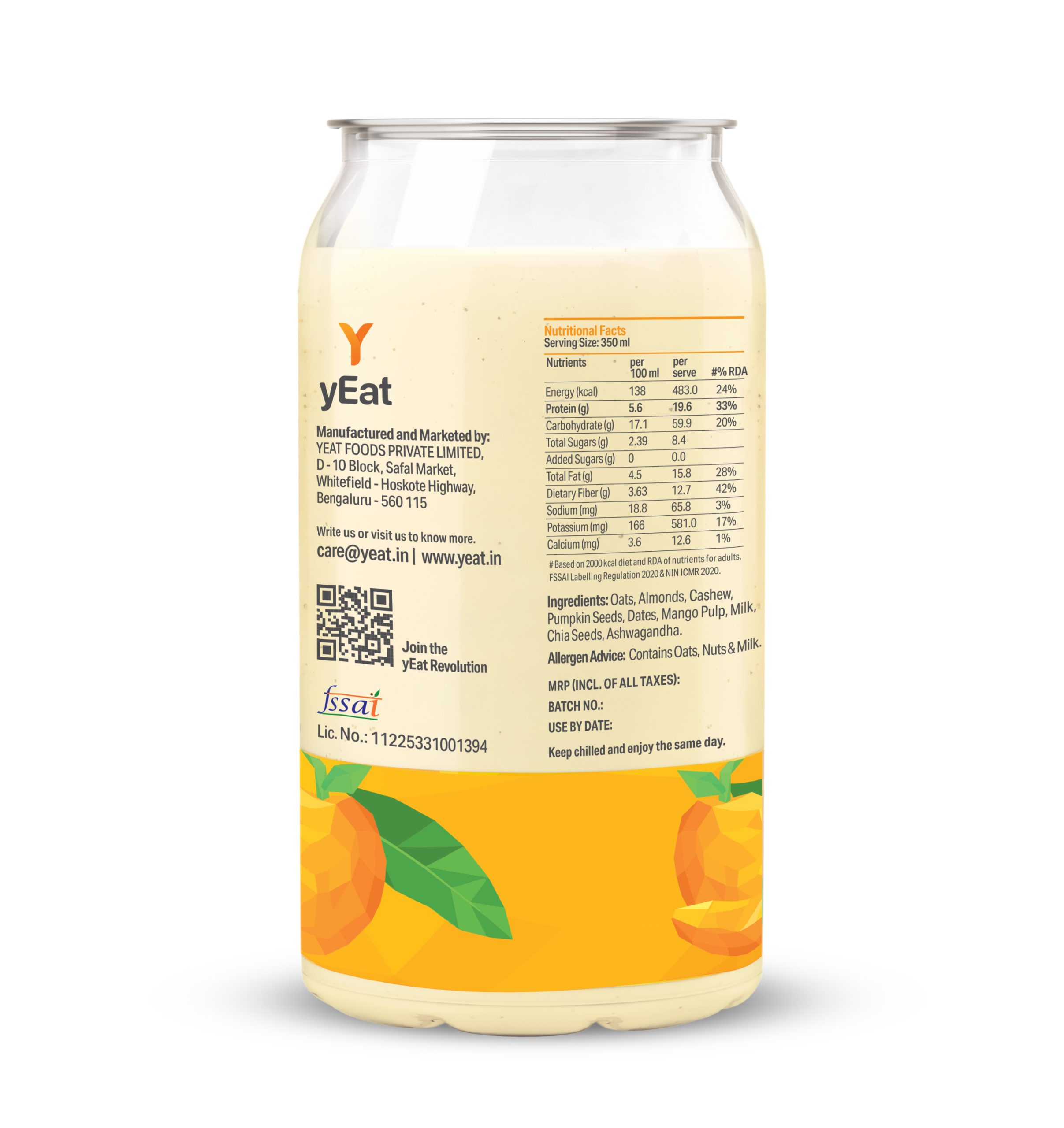 Ingredients: Oats, Almonds, Cashew, Pumpkin Seeds, Dates, Fruit Pulp, Toned Milk, Chia Seeds, Ashwagandha