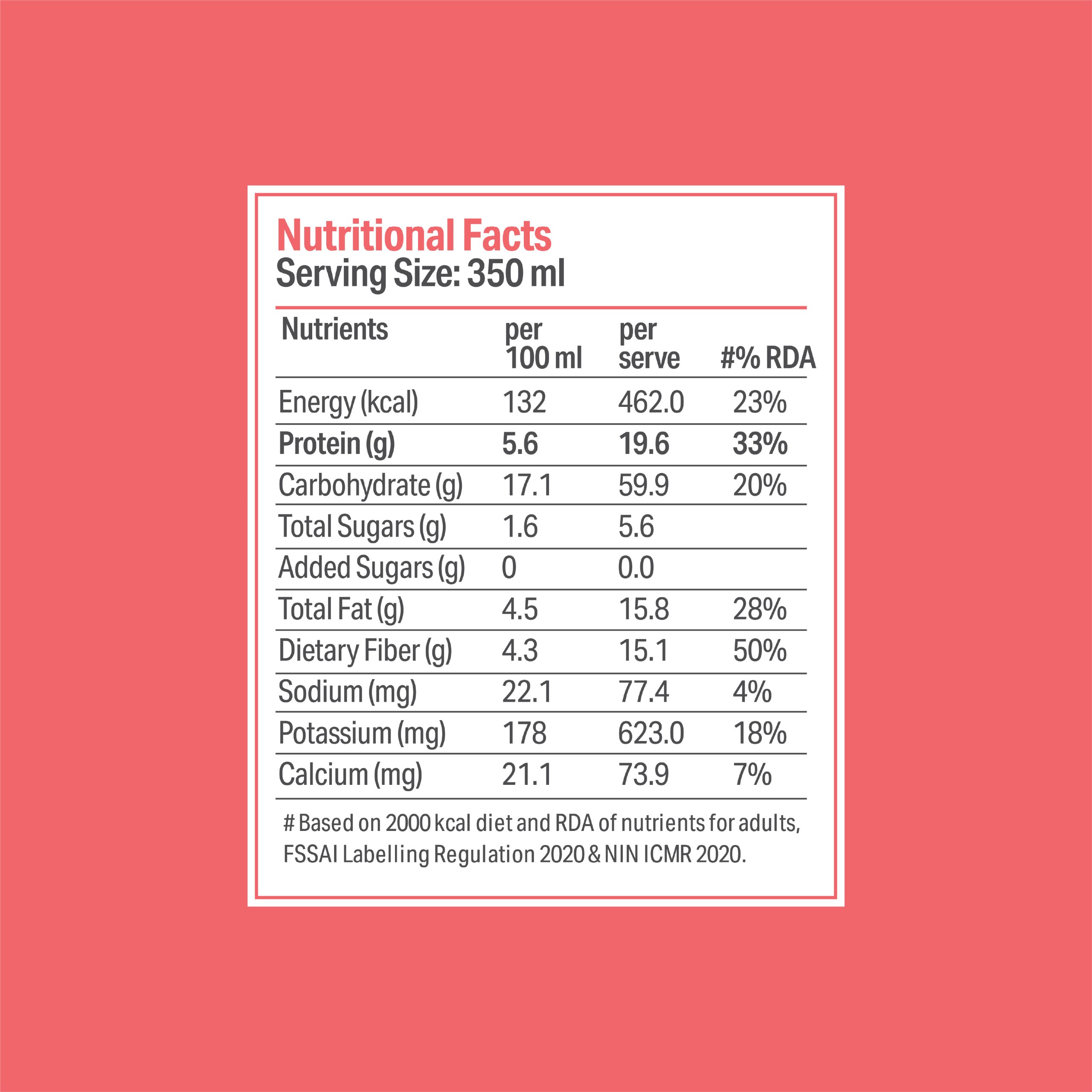Ingredients: Oats, Almonds, Cashew, Pumpkin Seeds, Dates, Fruit Pulp, Toned Milk, Chia Seeds, Ashwagandha