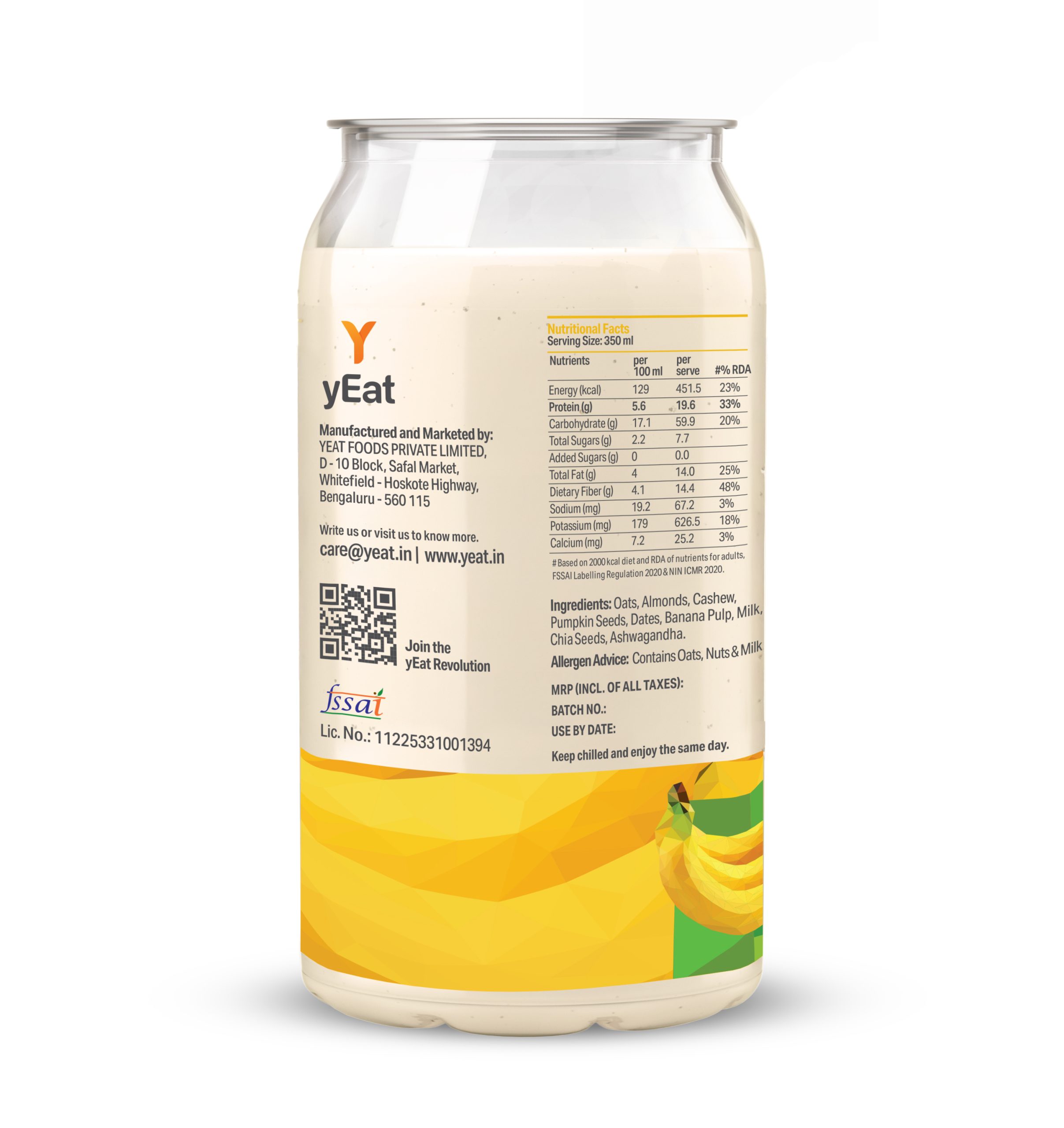 Ingredients: Oats, Almonds, Cashew, Pumpkin Seeds, Dates, Fruit Pulp, Toned Milk, Chia Seeds, Ashwagandha